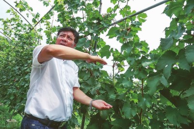 中科院植物所研究员、葡萄科学与酿酒技术北京市重点实验室主任李绍华在介绍新品种“北玫”的生长情况。