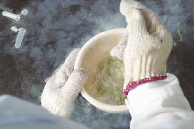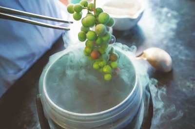 实验前,研究人员对葡萄作液氮降温处理。