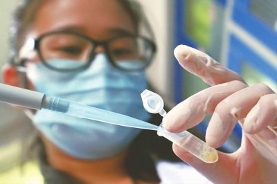 中科院植物研究所科研人员在实验室里观察经液氮降温处理后的葡萄新品样品。