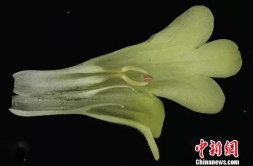 图为麻栗坡报春苣苔花冠、雄蕊和退化的雌蕊 杨丽华 摄