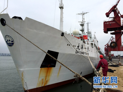 这是4月15日拍摄的停靠在厦门现代码头的“大洋一号”科考船。当日,搭载“潜龙三号”无人无缆潜水器和70名科考队员的“大洋一号”科考船从厦门起航,奔赴南海执行“大洋一号”综合海试B航段科考任务。这也是目前我国最先进的自主无人潜水器“潜龙三号”首次出海。新华社记者 刘诗平 摄