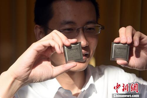 5月3日,寒武纪公司创始人兼CEO陈天石博士向媒体展示该公司最新研发的中国首款云端智能芯片MLU100。中新社记者 孙自法 摄