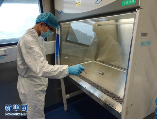 中国科学院武汉病毒研究所暖通设备工程师王亮在武汉P4实验室测试设备(资料照片)。新华社发