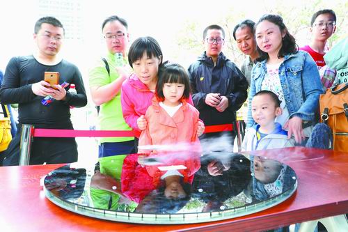 图为公众参观高温超导磁悬浮实验现场。中科院近物所袁海博摄