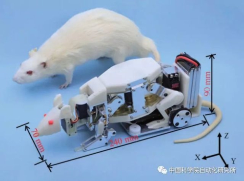 中科院自动化所的仿生机器鼠平台具有精密的传动结构,可模仿生物鼠的行为。(照片由中科院提供)