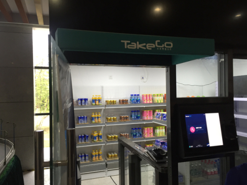 图为中科院自动化研究所在公众科学开放日上展示的无人售货亭