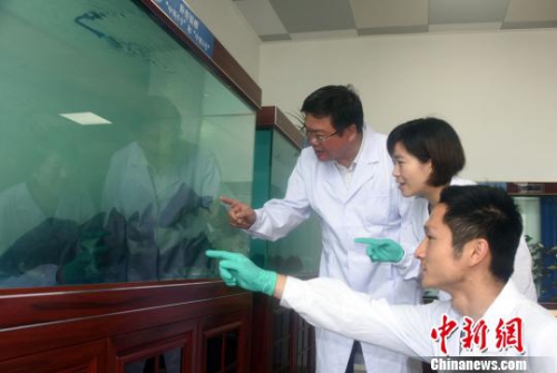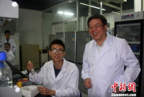 桂建芳院士(右1)在实验室与团队科研人员交流。孙自法摄