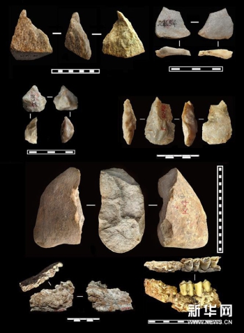 出土于上陈旧石器遗址的距今约212万年的部分旧石器和动物化石(资料照片)。