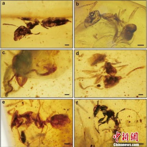 图为提林琥珀中各类蚂蚁。中国科学院南京地质古生物研究所 供图