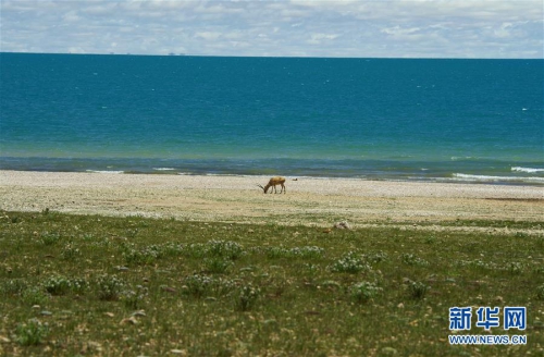 在西藏色林错湖畔拍摄的藏羚羊(2017年7月6日摄)。新华社记者 刘东君 摄