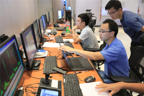 9月10日,工作人员在“中国天眼”总控室内工作。新华社记者 欧东衢 摄