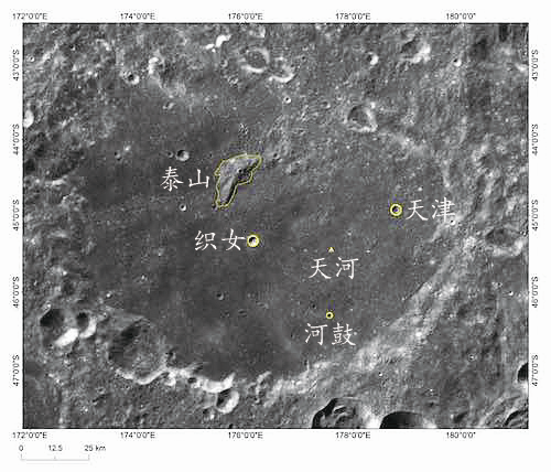 据悉,泰山是我国首次获得的“山”类月球地理实体名称的自主命名,这也是自1985年后,33年内IAU再一次批准命名“山”这一类月球地理实体名称。