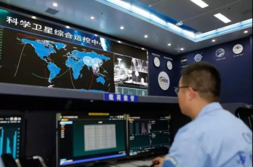 中科院国家空间科学中心空间科学任务大厅,科研人员实时监控空间科学卫星在轨运行情况。赵洋 摄