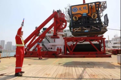 中国科学院海洋研究所科考船码头,工程技术部姜金光指挥吊卸“科学”轮4500米潜器"发现"号ROV。苑林 姜春明 摄