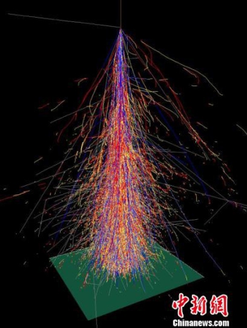 原初宇宙线进入地球大气后,与大气中的原子核发生相互作用产生空气簇射的示意图。中科院高能所