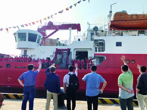10月3日,我国新一代远洋综合科考船“科学”号驶离青岛,执行国家自然科学基金委2019年西太平洋科学考察共享航次。