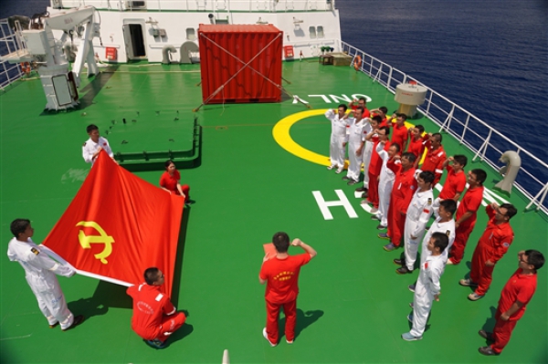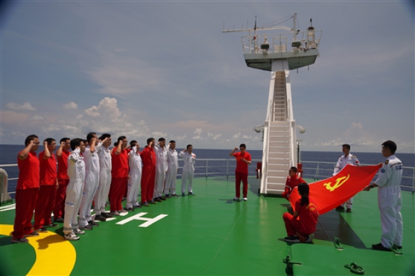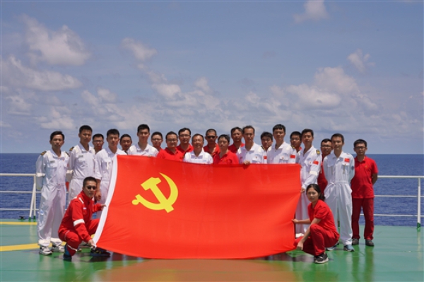 北京时间2019年10月30日10时40分(东九区时间10月30日11时40分),正在西太平洋执行国家自然科学基金委2019年共享航次的“科学”号海洋科学综合考察船举行“深海科考行,筑梦新时代”穿越赤道纪念仪式暨重温入党誓词活动。