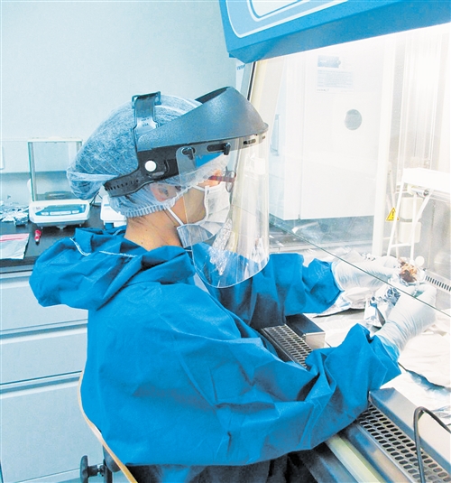 付巧妹带领的古DNA实验室团队成员在超净实验室工作。(资料图片)