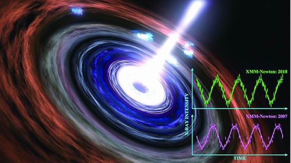 想听到一次黑洞的“心跳”有多难?如果你足够幸运的话,可能需要11年。十几年前,天文学家首次发现了来自一个超大质量黑洞的X射线准周期震荡信号——黑洞的“心跳”。十几年后,当天文学家再次有机会观测这个黑洞时,发现这个信号仍在持续。这项研究由中国科学院国家天文台研究员金驰川主导,与英国杜伦大学等的研究人员合作完成,于6月10日发表在《英国皇家天文学会月刊》上。