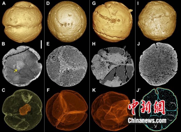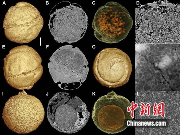 图为细胞分裂早期的瓮安旋孔虫。南古所