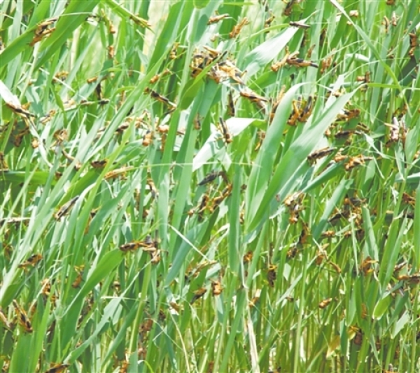 受群聚信息素“蛊惑”,飞蝗开始成群结队聚集,最终酿成毁灭性蝗灾。 (资料图片)