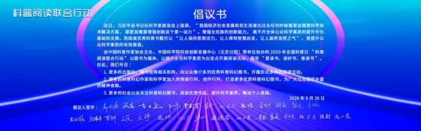 9月20日下午,全国科普日“科普阅读联合行动”领读活动暨中国科学院科技创新发展中心(北京分院)专场科普图书分享会在北京举行,会上发布了由中科院28名科研工作者(科普作家)联名签署的《科普阅读倡议书》,向全社会发出鼓励科普阅读、科普创作的倡议,助力形成全民读科学、学科学、用科学的良好氛围。