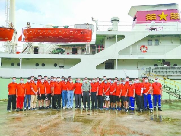 执行2020年东印度洋综合科学考察共享航次有关人员合影。禤础茵摄