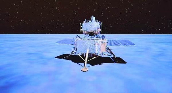 嫦娥五号于2020年12月1日23时许成功着陆月面,图为其着陆月球后的模拟图。国家航天局供图