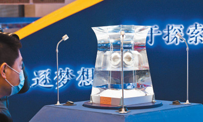 2月27日,“月球样品001号·见证中华飞天梦”开幕式暨捐赠入藏仪式在国家博物馆举行。国家博物馆以月球样品001号为中心,展出探月工程相关科技实物40余件,辅以大量图片资料、动态图片和视频资料,系统回顾中国探月工程取得的辉煌成就,全面展示中国人民实现“上九天揽月”梦想的伟大奋斗历程,振奋民族精神、激发民族自豪感、增强民族凝聚力。