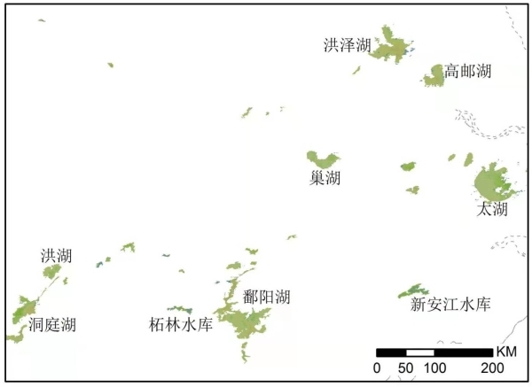 比如,长江中下游地区大型湖库FUI水色指数主要在7至15之间,其中自然湖泊水体较浑浊,如太湖、巢湖、洪泽湖等,水色指数主要在10至15之间,而该区域的人工水库水体相对清澈,水色指数主要在7至9之间;该区域湖库水色指数有下降趋势,表明水体在近20年变清澈;其中两个人工水库(新安江水库、柘林水库)水色指数下降显著,年变化率达0.04以上,表明清澈程度有明显上升。
