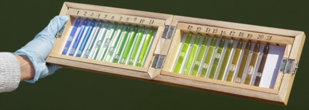 水体颜色已有一百多年的现场观测历史,在现场调查中通过手持式福莱尔水色计把自然水体颜色分为从深蓝到红棕色的21个级别,用于记录海洋以及内陆湖库水体颜色。水色指数Forel-Ule Index(简称为FUI)来源于福莱尔水色计,包括1至21之间的21个整数,FUI水色指数越低即水体颜色越偏蓝色;反之,水色指数越高即水体颜色越偏向黄红色。