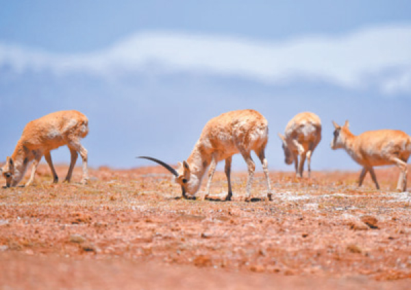 一群藏羚羊在可可西里地区活动。新华社记者 吴刚摄