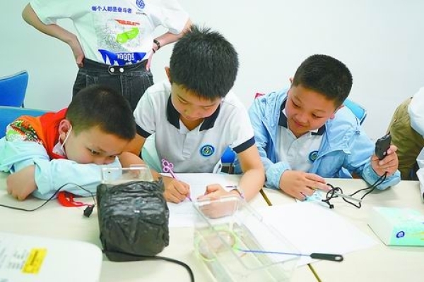 在中科院脑科学与智能技术卓越创新中心,同学们进行斑马鱼亮暗偏好实验。曹发华摄