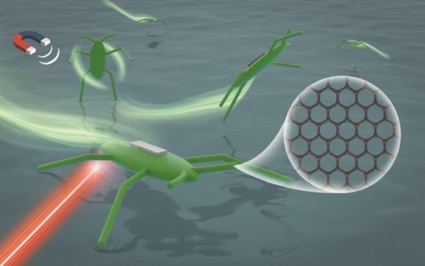 中科院沈阳自动化所微纳米课题组的科研人员从自然界中的水黾获得灵感,利用具有光相应、磁响应及超疏水特性的复合材料,加工出了仿水黾微型机器人,基于磁驱动技术和材料的超疏水特性,实现了微型机器人在水面的快速游动、跳跃及翻滚动作,实现了新材料制备与多场驱动技术的融合,为仿昆虫机器人的研究提供了新的思路。