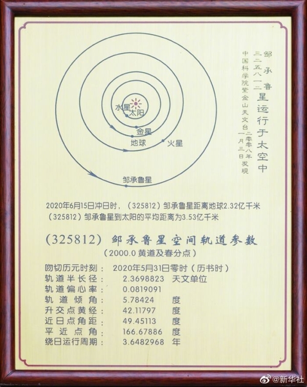 据悉,小行星命名是一项国际性、永久性的荣誉,是世界公认的一项崇高荣誉。