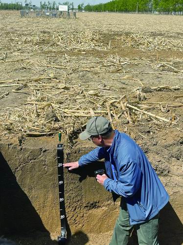 张旭东在梨树试验示范基地介绍土壤有机质变化。 沈春蕾摄