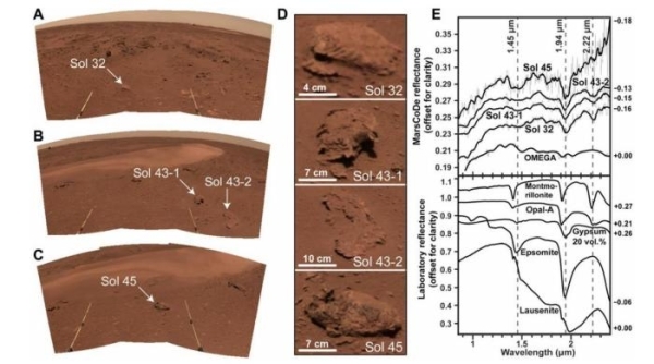 祝融号火星车获取的短波红外光谱和导航地形相机数据帮助解决了这个难题。研究团队利用这些数据发现了岩化的板状硬壳层,其中富含含水硫酸盐等矿物。据推断,这些硬壳层可能是由地下水涌溢或者毛细作用蒸发结晶出的盐类矿物,胶结了火星土壤后经岩化作用形成。