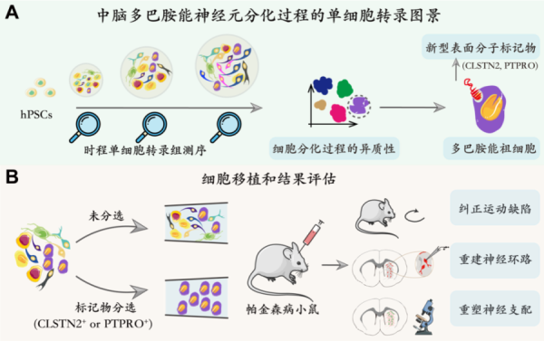 “该研究为中脑多巴胺能神经细胞分化过程中,细胞异质性的产生和移植物中非目标细胞的来源提供了更全面的理解。我们建立了获得高度纯供体细胞的方法,这些供体细胞移植后可获得稳定且可预测的细胞治疗结果。”陈跃军补充说,“该研究为实现更有效、更安全的帕金森病细胞替代疗法迈出了重要一步。”