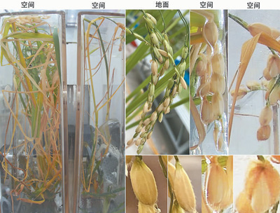 水稻空间开花时间比地面略有提前,但是灌浆时间延长了10多天,大部分颖壳不能关闭。开花时间和颖壳闭合均是水稻的重要农艺性状,二者在保障植物充分生殖生长和获得高产优质种子方面都有重要作用,此过程受到基因表达的调控,后续将利用返回样品进一步分析。