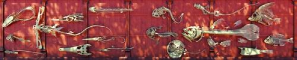 5月14日,中国科学院公众科学日期间,卢静把这一镇馆之宝和其他几种鱼类“搬”到了博物馆的外墙上。不同的是,它们只有骨骼,没有肉身。这些骨骼有的一会儿闪着炫酷的色彩,科技感十足;一会儿又呈现洁白的骨头质感,再配上故宫红的背景,复古且庄重。