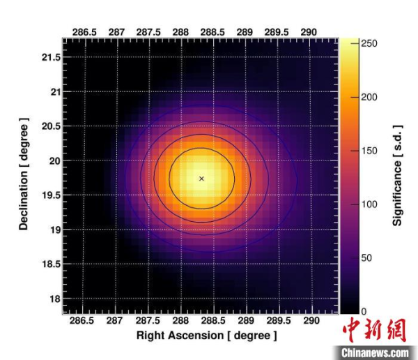 “拉索”以超过250倍标准偏差的高显著水平观测到了伽马射线暴GRB 221009A的爆发。中科院高能所 供图
