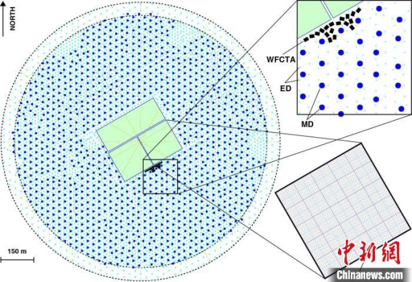 高海拔宇宙线观测站(“拉索”)的构成与布局示意图。中科院高能所 供图