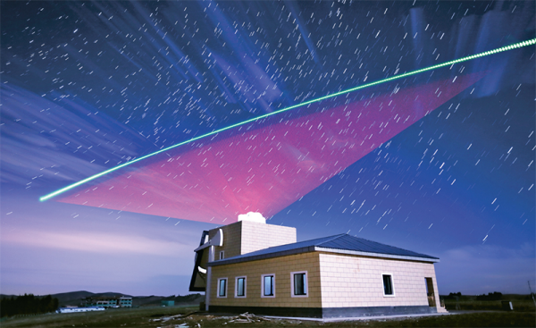 图为“墨子号”量子科学实验卫星过境。图片拍摄于中国科学院新疆天文台南山观测站,绿色为卫星运行轨迹,红线为地面发出的信标光。“墨子号”量子科学实验卫星是我国具有核心自主知识产权的一项重大战略性先导科技成果,由中国科学技术大学、中国科学院上海技术物理研究所、中国科学院微小卫星创新研究院、中国科学院光电技术研究所等机构共同研制完成。中国科学技术大学供图