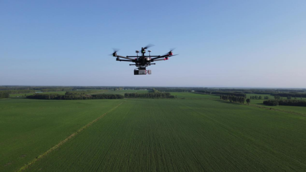 搭载激光雷达的无人机正在进行农业科技作业。(受访者供图)