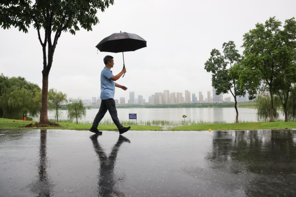 彭承志行走在安徽合肥蜀西湖边(7月21日摄)。