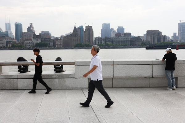 彭承志行走在上海浦东滨江大道(7月22日摄)。