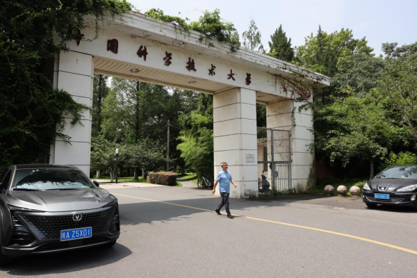 彭承志走出位于安徽合肥的中国科学技术大学校门(7月21日摄)。