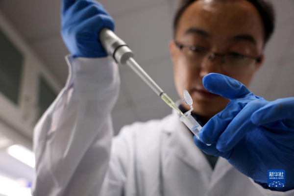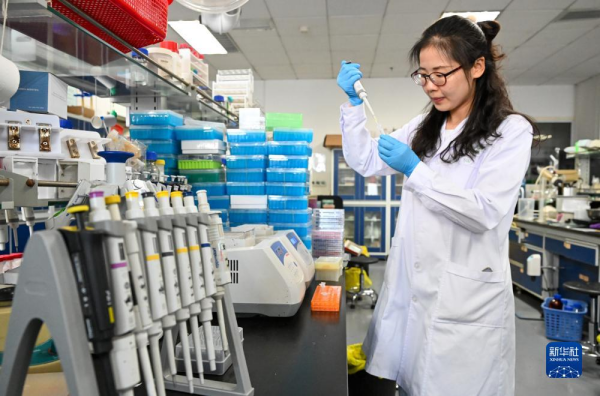 在中国科学院天津工业生物技术研究所实验室,宋皖博士在做人工合成己糖实验(8月13日摄)。新华社记者 孙凡越 摄