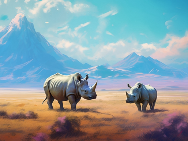 贺兰山前的宽鼻同心犀示意图。中国科学院古脊椎动物与古人类研究所供图