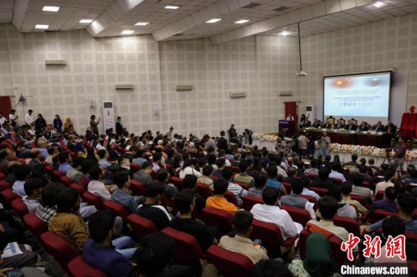 当地时间10月25日,中国-巴基斯坦地球科学研究中心在伊斯兰堡揭牌成立,图为揭牌仪式会场。中国-巴基斯坦地球科学研究中心供图